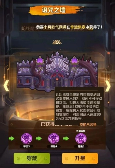 第一,属性孤立,无法享受全局增益。该城墙的所有效果均为独立触发,与我们精心构筑的角色冷却缩减、负面状态持续时间加成、伤害增幅等全局属性完全脱钩。相比之下,炙热锅炉墙、光能护盾墙、符文能量墙等主流防御建筑,都能从这些养成属性中获得显著收益,成长空间巨大。而诅咒之墙只能固守其基础的3秒控制和180秒冷却,在成长性和后期潜力上存在明显瓶颈。