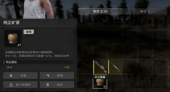 强大的工具需要搭配高效的增益。饮用纯正矿茶后,能在30分钟内获得提升50%矿石采集量的强力Buff。这个效果等同于将你的每次挖掘收益直接提升一半,对于专注于矿石开采的玩家而言,是采集前不可或缺的准备工作。
