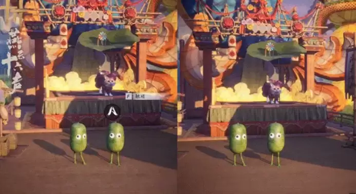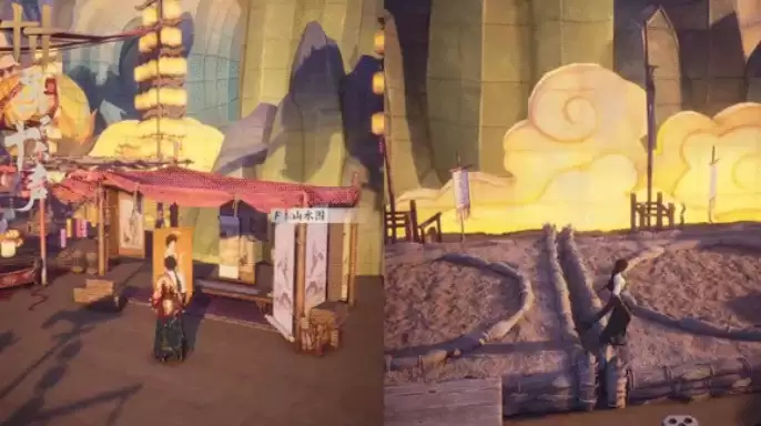 尚未从客栈的喧闹中完全抽身,第三重梦境已然展开:眼前是一条仿佛没有尽头的繁华灯市,花灯璀璨,摊位林立。更有趣的是,在此梦境中,两位探索者将化身为圆润可爱的特殊形象,穿梭于瓜果摊位之间。这一部分没有战斗压力,旨在让玩家沉浸于节庆般的氛围中,依靠一路建立的默契,自由自在地游历,享受纯粹的探索与互动乐趣。