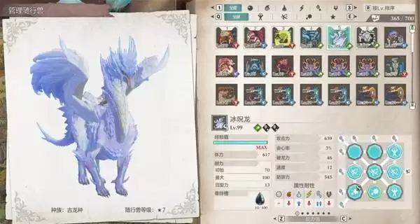 作为古龙种,冰呪龙拥有傲人的防御面板与强大的冰属性技能。其S技“至寒吐息+”威力强大,并能给目标附加“防御下降中”的减益状态。需注意的是,游戏后期弱冰的怪物相对较少,限制了其发挥空间。冰系优质怪物多集中于第4图,而当玩家推进至此阶段时,若前期培养得当,攻略冰呪龙本身已非难事——在四大天变古龙中,其挑战难度相对友好。