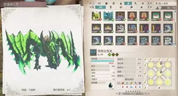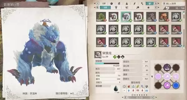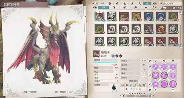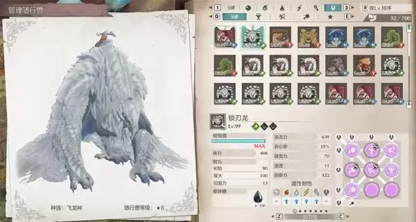 关于属性面板,有一个常被忽视但至关重要的数值:“回复力”。它直接决定了随行兽耐力(SP)的自然恢复速度。绝大多数主动技能均消耗耐力,强力的S级技能消耗往往高达50点以上。因此,优先选择回复力在12点以上的随行兽作为主力,能显著提升持续作战能力。若回复力低于10,其续航压力会大幅增加,培养前需谨慎评估。