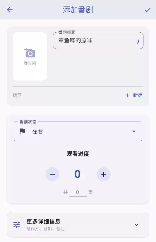 首先,我们来详细了解一下它的核心番剧追踪功能。用户可以随时添加正在追更的动画剧集,操作界面非常直观——无论是番剧名称、海报封面,还是关键的当前观看进度,都能快速选择与记录。整个过程就像打理自己的追番手账,所有信息一目了然,轻松管理你的追番历程。