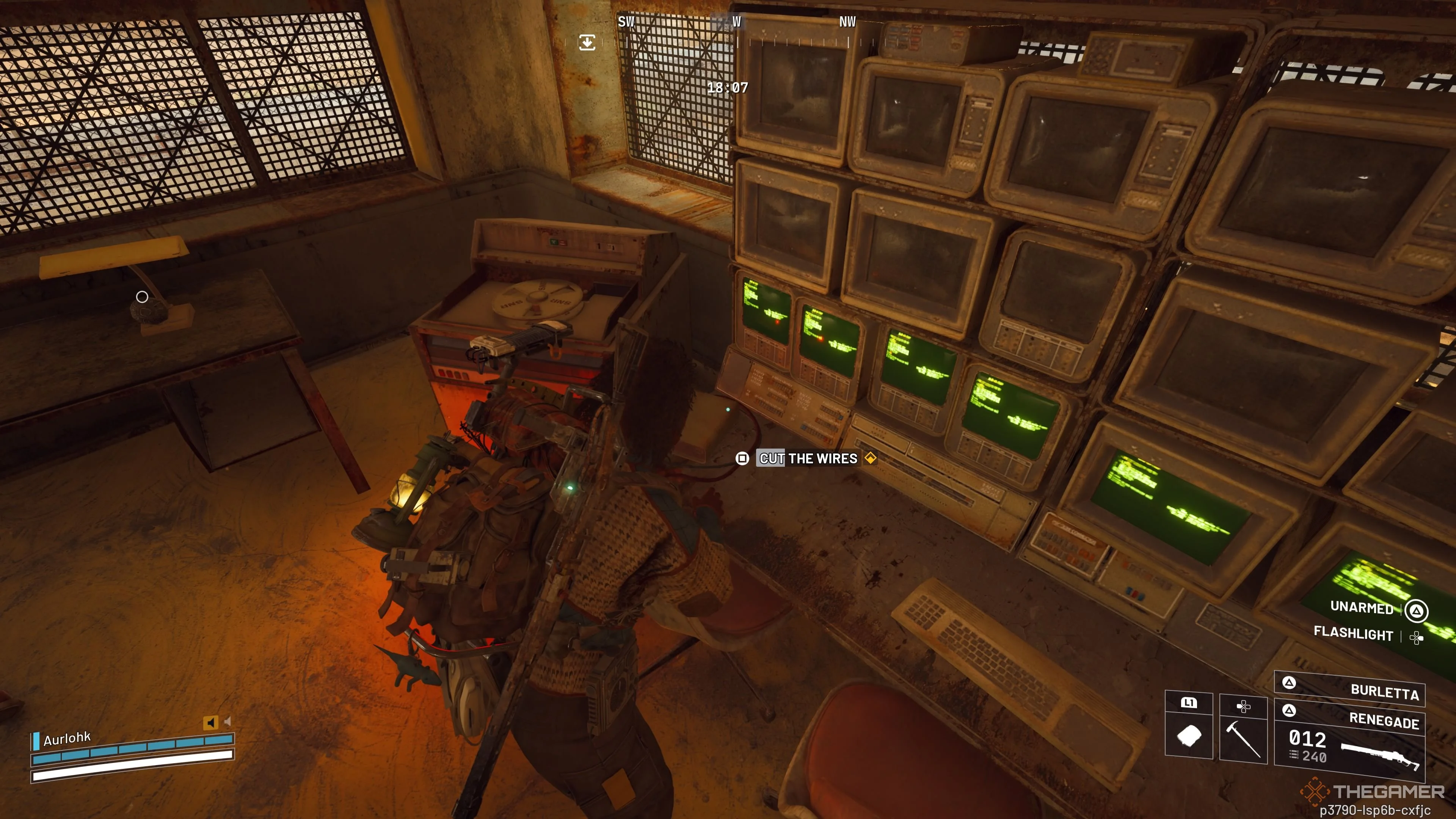 绝大多数安全塔在围墙底部都设有一扇可进入的门。门内通常配备了一条直达塔顶的滑索通道。抵达塔顶的控制室后,请将注意力转向房间左侧一个独立的控制终端。上前与之互动,即可成功激活莎妮要求修复的安全传感器。