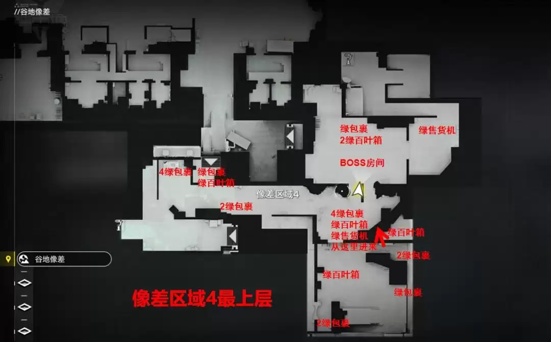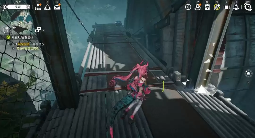 若决定完成该任务,标准流程为:跟随任务指引寻找红色三角标记,解锁并击败区域BOSS。随后返回初始点,利用通往高架桥的滑索。在高架桥的滑索网络中,注意观察上方,有一条滑索可直接通往“谷地像差4”任务区。最效率的刷取策略是:集中清理BOSS房间附近的上层区域资源点;下层区域在解锁BOSS房后可暂不探索,每次通过滑索直达最上层进行收集即可。