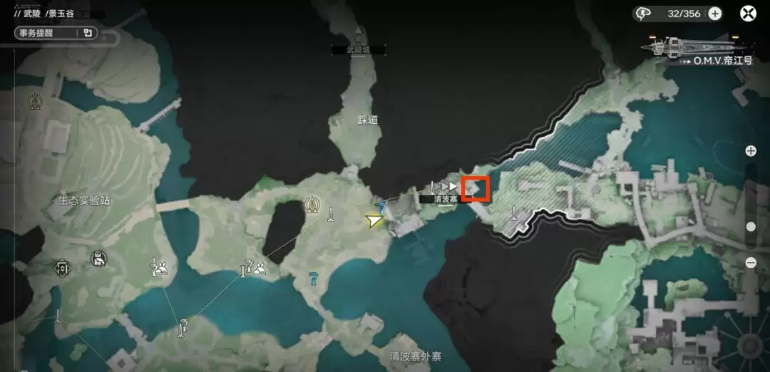 此次需传送至“景玉谷右上角”的协议终端。传送后,朝清波寨方向前进,途中会经过一座横跨河流的桥梁。关键点:过桥时不要急于离开,仔细观察桥体下方结构,第三个宝箱正藏匿于此处的视觉死角,稍加探索即可收入囊中。