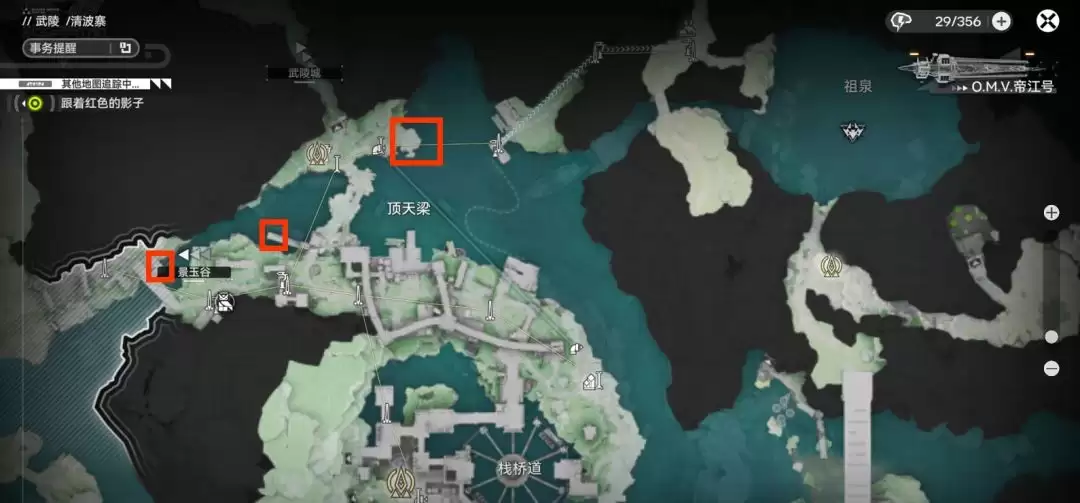 时间紧迫,我们直奔主题。下方总览图已清晰标注三个宝箱在清波寨入口区域的大致方位,方便各位博士建立全局认知。