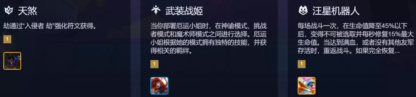 金铲铲之战S17天煞羁绊:效果解析与实战应用 在《金铲铲之战》S17赛季中,【天煞】是一个定位独特的专属羁绊,仅由5费英雄“劫”所携带。激活这一羁绊需要特定的前置条件——玩家必须在强化符文选择阶段获得【入侵者劫】。一旦成功解锁,劫将获得全新的技能机制,从而在战局中发挥出颠覆性的作用。 金铲铲之战S1