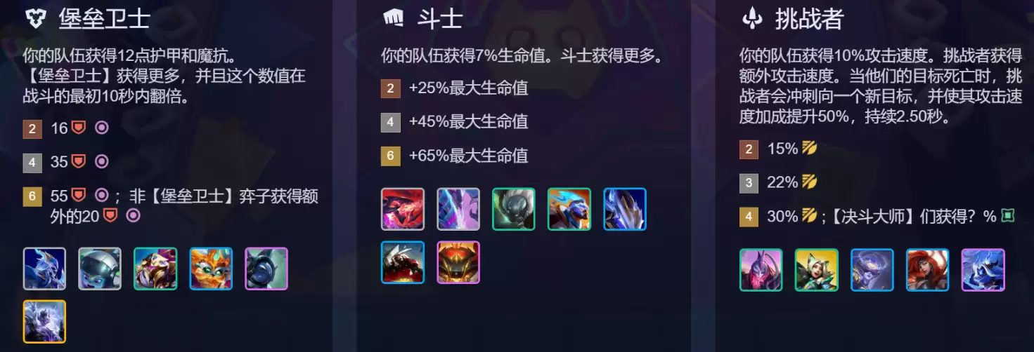 特质羁绊定义了棋子的种族背景与核心团队能力。下方图示详细列出了各特质在不同人口数量下触发的具体效果,是您构筑阵容地基时必须掌握的核心信息。