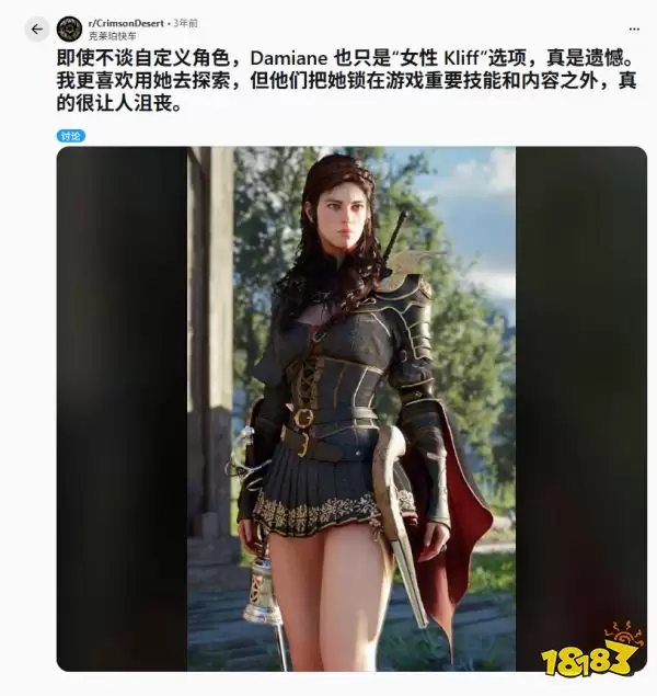 这种设计带来了显著的体验断层。有玩家犀利地评论道:“尽管我非常喜爱她独特的战斗风格,但不得不承认,在现有的游戏框架内,她缺乏存在的充分理由。”这种矛盾心理,催生了大量玩家自发的改良设想:从将她调整为可随时切换的辅助战斗伙伴,到彻底重构其角色定位,使其成为拥有独立故事线的女性主角并深度嵌入主线叙事。这些广泛的探讨,本质上都指向同一个核心诉求——希望这个已具备优秀雏形的角色,能够真正“融入”并“活”在《红色沙漠》的整个世界之中。