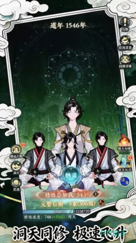 修行途中存在诸多提升效率的途径。“洞天同修”机制能大幅加速灵气的吸收与转化,让跨阶修炼事半功倍。此外,长期培育“仙树”这一养成支线,通过周期性互动可获得可观的额外修为加成,属于稳健的长期投资。当修为达到元婴期后,玩家便可开宗立派,经营属于自己的宗门。通过承接宗门任务、与其他势力结盟或竞争、共同探索秘境并争夺稀有资源,这一系列社交与策略玩法能显著缩短飞升成仙的周期。游戏内所有副本掉落的装备均可兑换为通用货币,使后期资源规划极为灵活,便于玩家定向兑换所需法宝或关键突破材料。