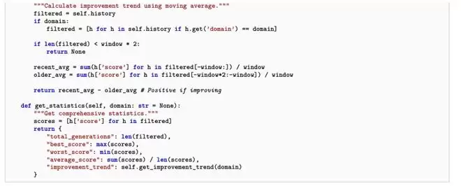 论文中甚至直接给出了自动生成的性能追踪器代码和持久记忆条目:它开始记录跨代指标、总结哪些代际策略有效、诊断过度修正、制定下一轮改进计划。