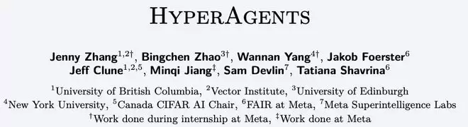 华人学者Jenny Zhang在Meta实习期间,联合Meta AI、UBC、纽约大学等机构研究者,提出了一种新的智能体框架:HyperAgents(DGM-H)。