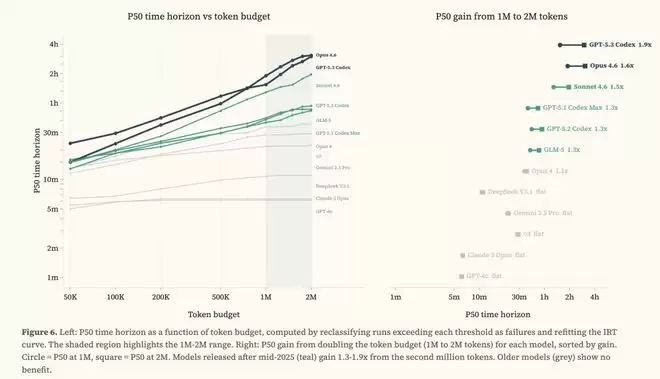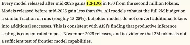 2M token严重低估真实能力,后2025模型在1M-2M token间P50提升1.3-1.9倍!