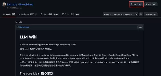 GitHub上他附带的一份「想法文件」(idea file),不到12小时拿下超2100颗Star。