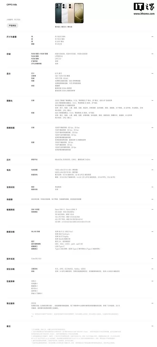 OPPO A6k上市:天玑6300+LCD直屏+7000mAh电池,1999元起