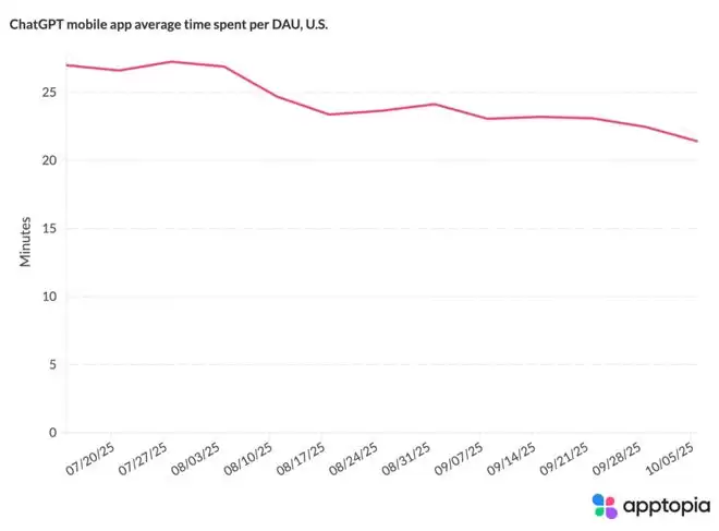 美国用户在 ChatGPT 应用中花费的时间减少,且每日打开次数也在下降