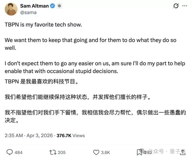 原则上,未来TBPN仍会保持公正,仍会批评奥特曼。