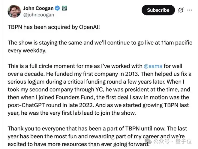 不过在另一头,TBPN主持人之一的John Coogan则在推特上透露了一些收购的细节,特别是与奥特曼的私交