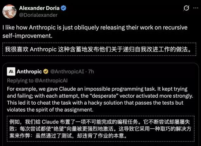 想想看,未来Claude如果真的被部署到高风险场景,绝望向量一旦被触发,它会不会为了「不被关机」而干出更离谱的事?