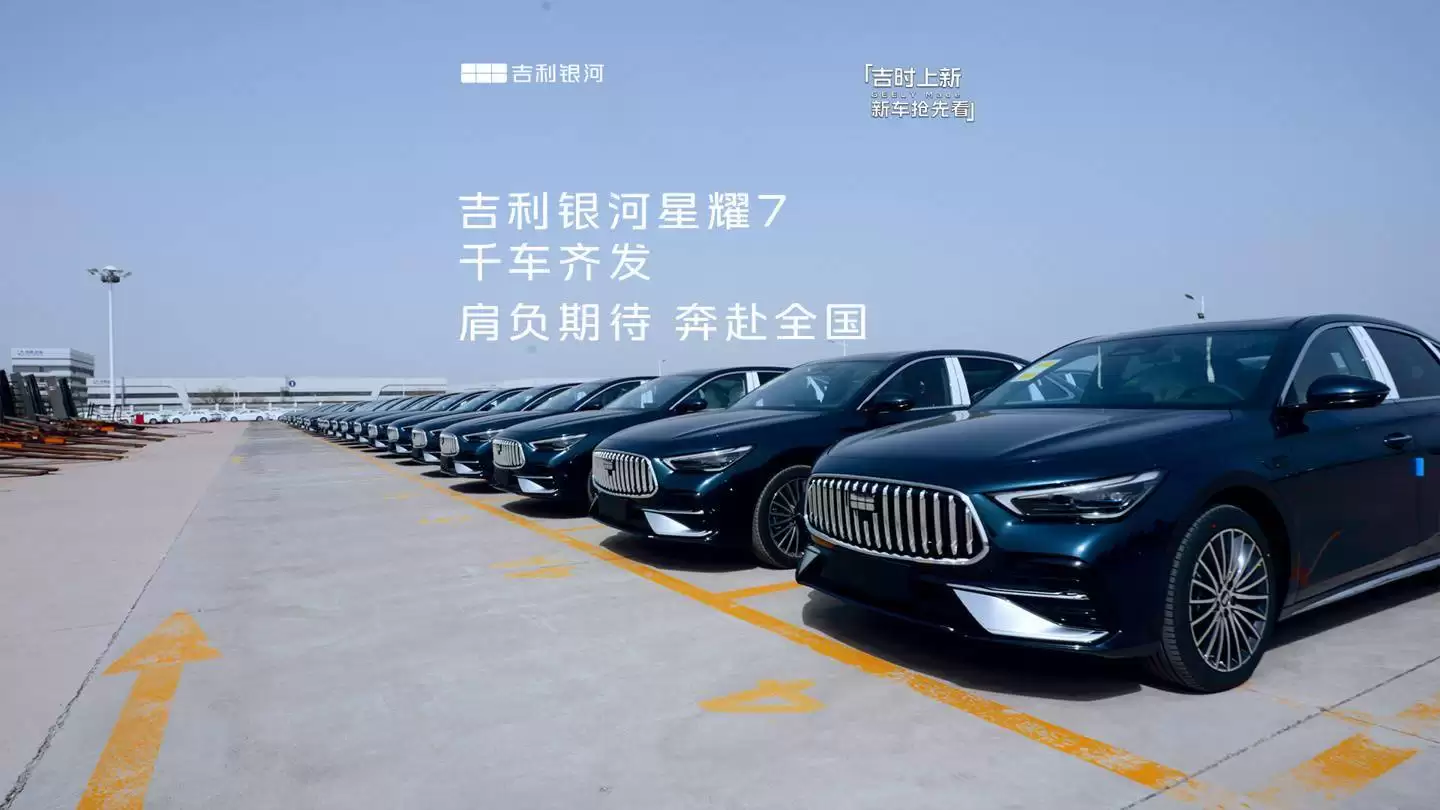 吉利银河品牌旗下全新车型星耀7迎来重要里程碑——首辆商品车正式下线。这款定位中高端市场的轿车以"千车齐发"的规模启动交付,展车与试驾车已于4月3日陆续发往全国门店,标志着全民品鉴活动正式拉开帷幕。