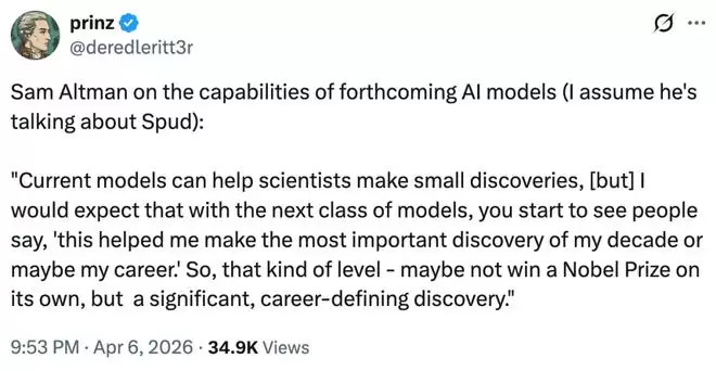 与此同时,Altman 还谈到了即将推出的下一代人工智能大模型,应该是传闻中的 Spud。