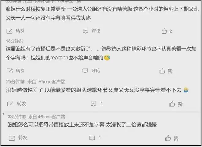 首先,不知道出于何种原因,《浪姐7》选组直播取消了,变回了原有的录播形式,网友讨论热情瞬间就降低了。