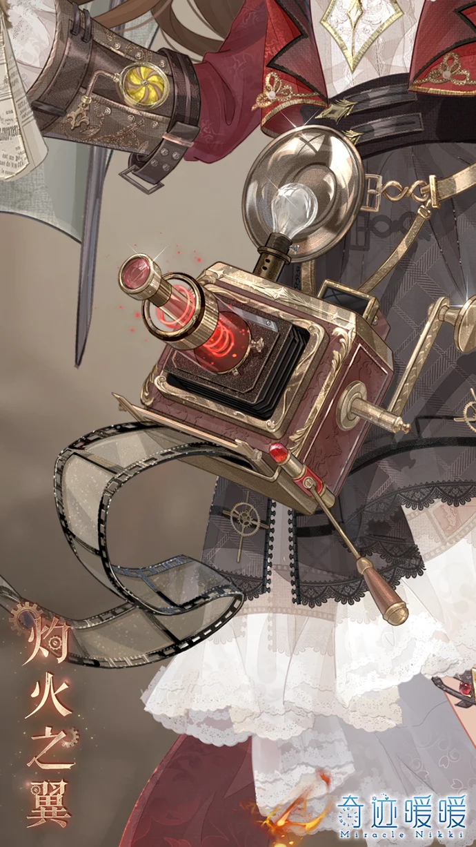 新闻发生之地,必有她的身影。【灼火之翼】套装塑造了一位名为梅迪的传奇记者。她总能凭借灵巧的机械装备,出现在城市的各个角落,用镜头定格真相。套装风格更侧重于都市谍报与敏捷机动特性,充满了现代机械感。