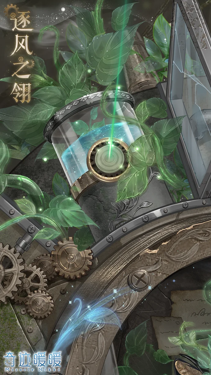 装备上铿锵作响的金属飞翼,凭借澎湃的蒸汽动力,她便能够冲向云霄。【逐风之翎】套装刻画的是一位勇敢的机械探险家形象。她手持环境扫描仪,正深入神秘丛林探索未知遗迹。整体设计融合了工业力量感与户外冒险精神。