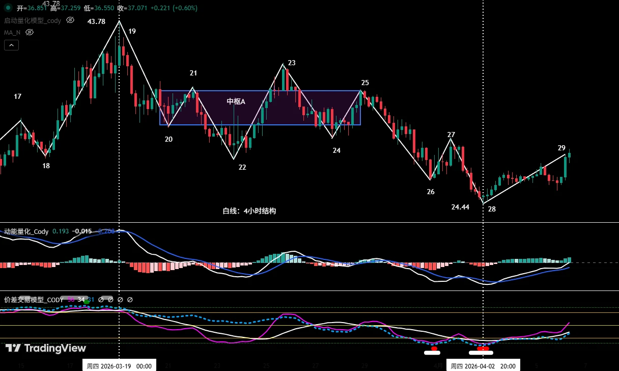 • 关于开仓时机:目前行情正处于震荡上行过程中。若本周价格能够成功突破38美元这一关键阻力位,并在回踩时能稳稳站在34.47美元(4月2日低点)支撑位上方(回踩位置距离该低点越远,信号越强),那么这可能构成一个确定性较高的右侧买入机会。