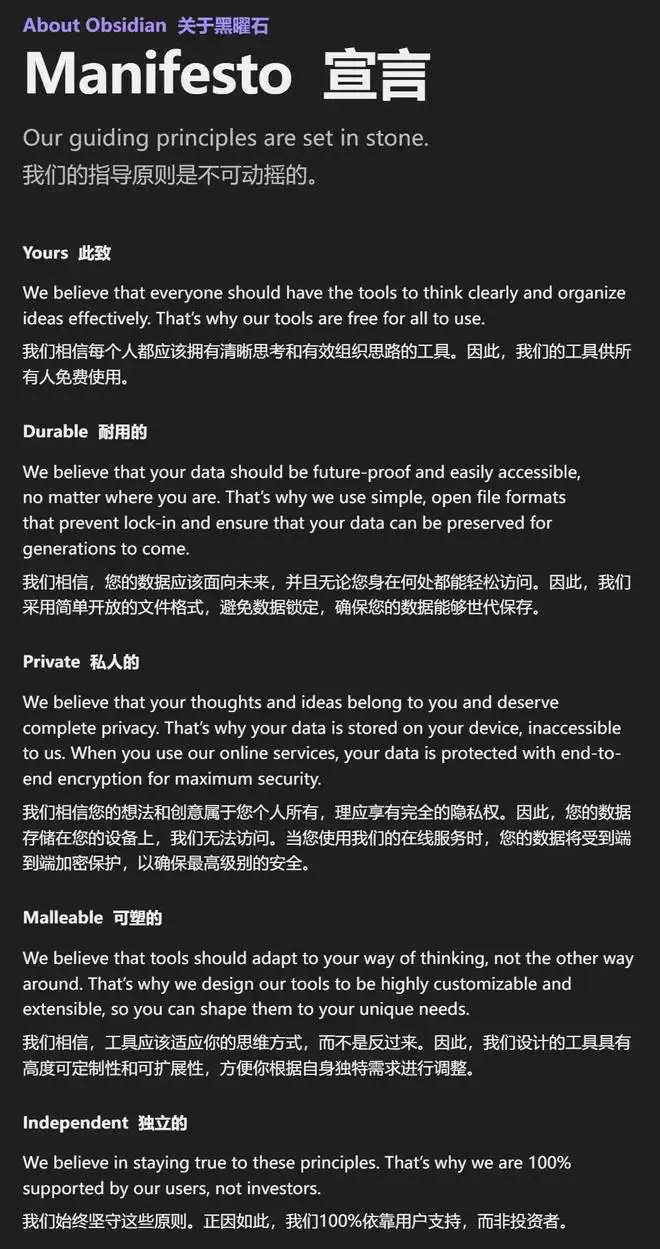 在尝试了市面上所有的笔记软件后,他们感到深深的失望。他们想要一款速度极快、完全离线、且能长期安全保存知识的纯文本工具,但当时的主流产品无一能完美命中这些痛点。本着极客「既然买不到,那就自己造」的精神,2020 年 3 月,Obsidian 的第一个测试版在隔离的「车库岁月」中敲击成型。