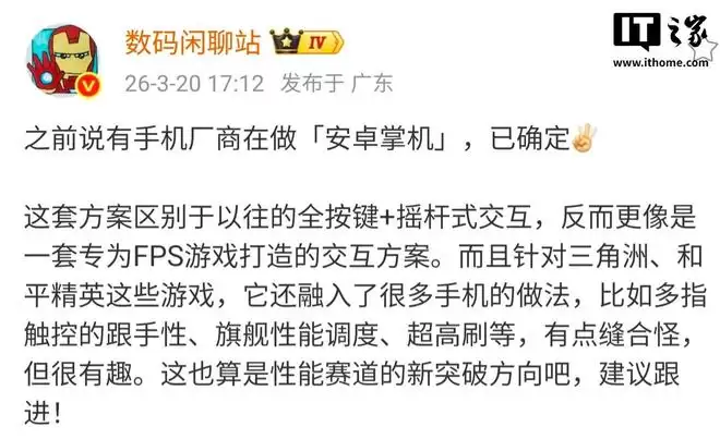博主 @数码闲聊站 曾爆料,有手机厂商在做“安卓掌机”。结合新的爆料来看,预计就是指一加掌机。