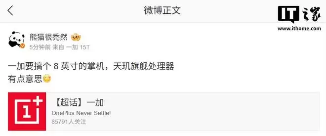 IT之家 4 月 7 日消息,在手机市场竞争激烈、内存大涨价的背景下,博主 @熊猫很禿然 今日爆料称:一加要搞个 8 英寸的掌机,天玑旗舰处理器。