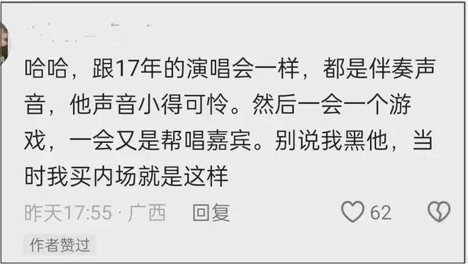 作品确实是一个人的底气,但是歌手如果不想要唱现场,那不开演唱会就好了,不能既要又要,长此以往,砸得是自己的口碑。最后,想要去看的人就降低预期,可能还会比较好接受。
