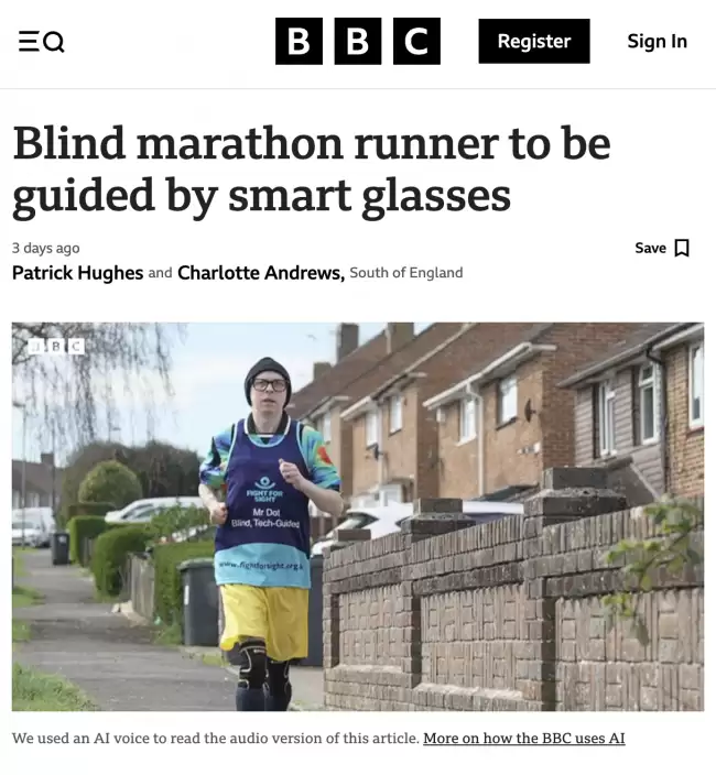 英国盲跑者借助智能眼镜挑战马拉松识别赛道和方向