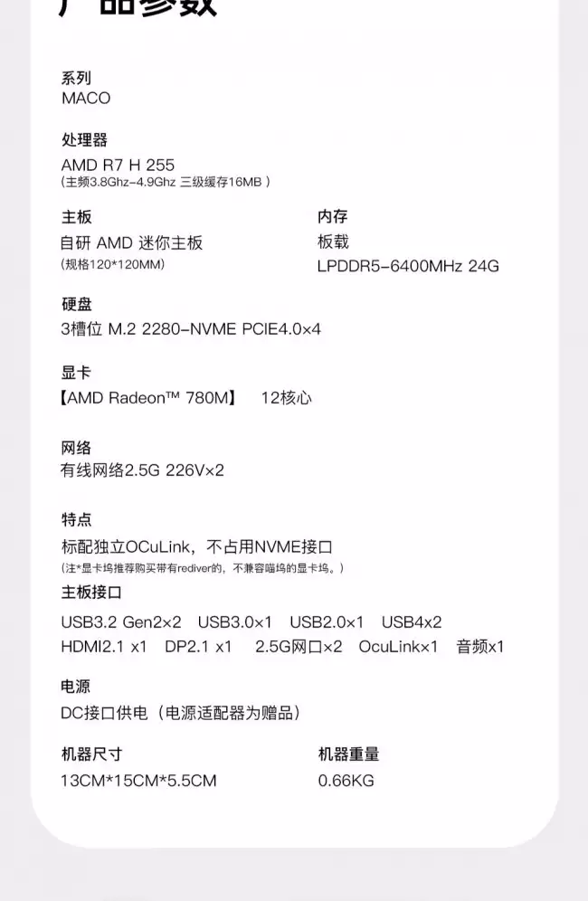 为方便您全面了解,以下附上天钡MACO 255迷你主机的详细规格参数表: