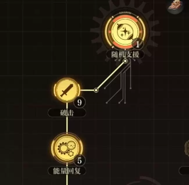 后期加点:解锁双支援技能槽位后,可考虑投资正上方的“随机支援”技能。该技能实用性强,资源回报率高,是后期的优选。