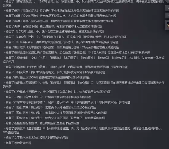 整体而言,此次《仁王3》更新补丁主要围绕三大核心模块展开:功能与系统优化、武器及武技修复、以及通用错误修正。每一项改动都旨在解决实际游玩中的痛点,体现了开发团队对游戏品质的持续打磨。