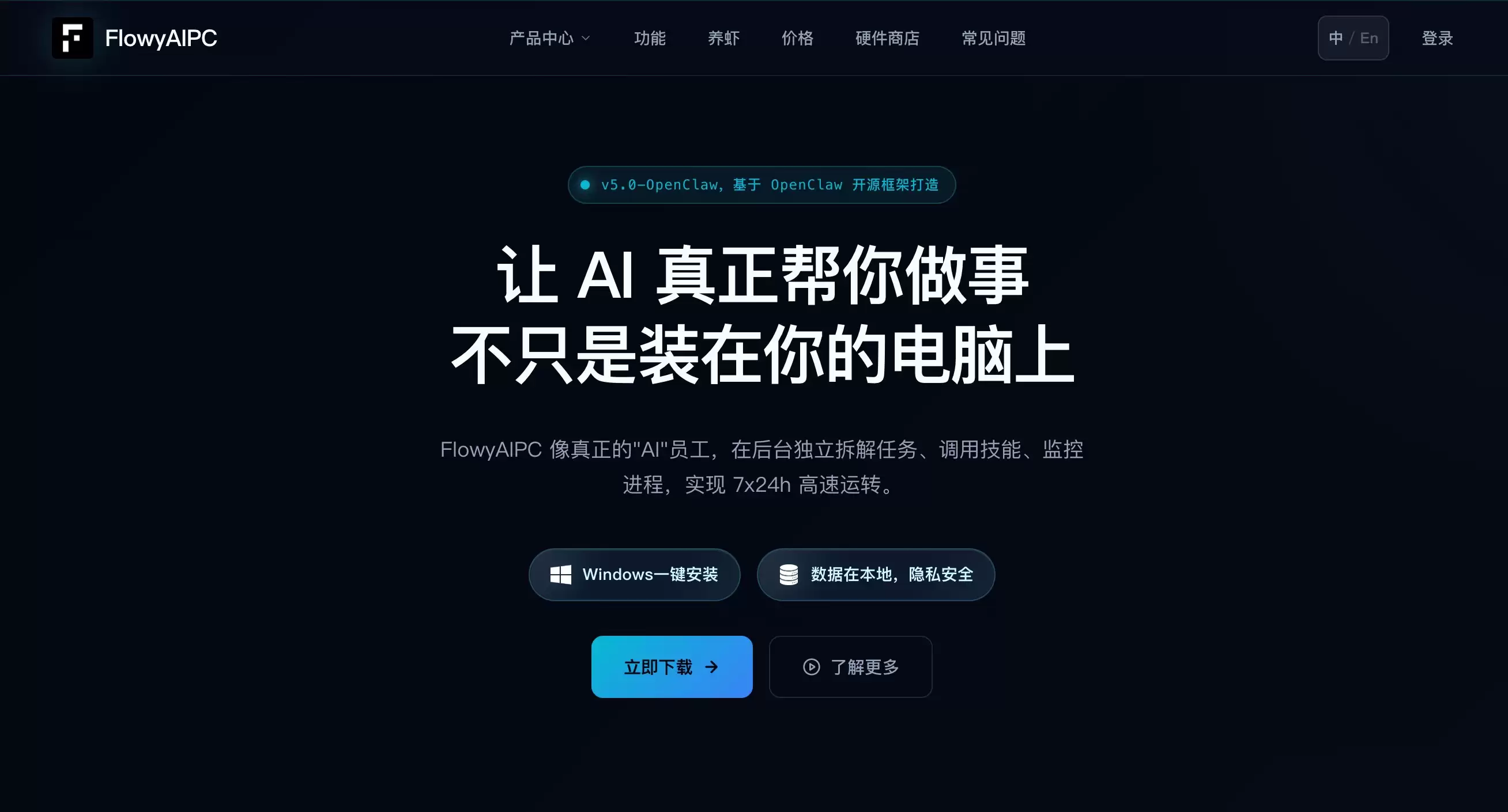 为了让技术门槛降到最低,主办方这次为Windows用户做了特别准备——FlowyAIPC v5.0版本。简单来说,就是安装即用。无需折腾复杂的环境配置,也省去了填写各类密钥的麻烦,真正做到打开就能运行。所以,这场活动的核心与其说是讲解AI有多强大,不如说是帮你把那只一直“躺在硬盘里沉睡”的龙虾,真正激活、养大。
