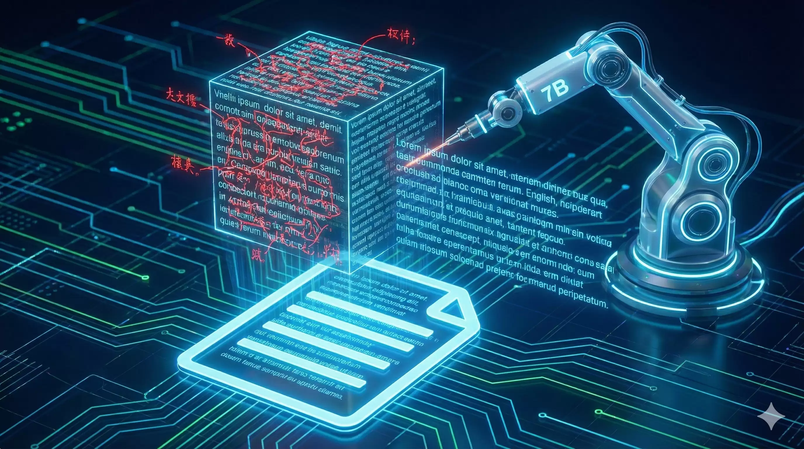 如果你对翻译精准度有着近乎苛刻的要求,那么同步推出的7B版本,无疑是为你准备的重型武器。相较于前代,7B版本在准确率上实现了显著跃升。更难得的是,研发团队针对大模型翻译的常见顽疾进行了外科手术式优化:有效抑制了译文生成中多余的解释性注释,并解决了语种混杂的“乱码”现象。这使得输出译文更加纯净、地道,直接可用性大大增强,省去了大量人工二次校对的麻烦。