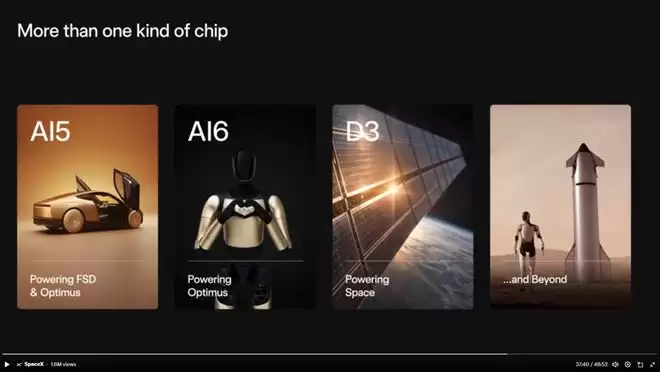 具体到产品型号,信息更加引人注目。其中,AI5芯片被设计为特斯拉全自动驾驶(FSD)系统和擎天柱机器人的“专用大脑”,其性能算力据称将比现有的AI4芯片高出惊人的40至50倍。而下一代AI6芯片预计在今年年底完成设计,目标应用是第二代擎天柱机器人以及大规模推理计算集群。另一款D3芯片,则完全围绕太空环境打造,旨在为星链(Starlink)、星舰(Starship)等太空项目提供核心计算能力。