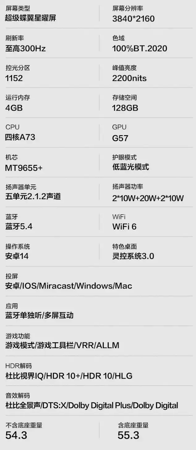 为了更清晰地了解其顶级配置,这里附上以98英寸版本为例的详细参数表: