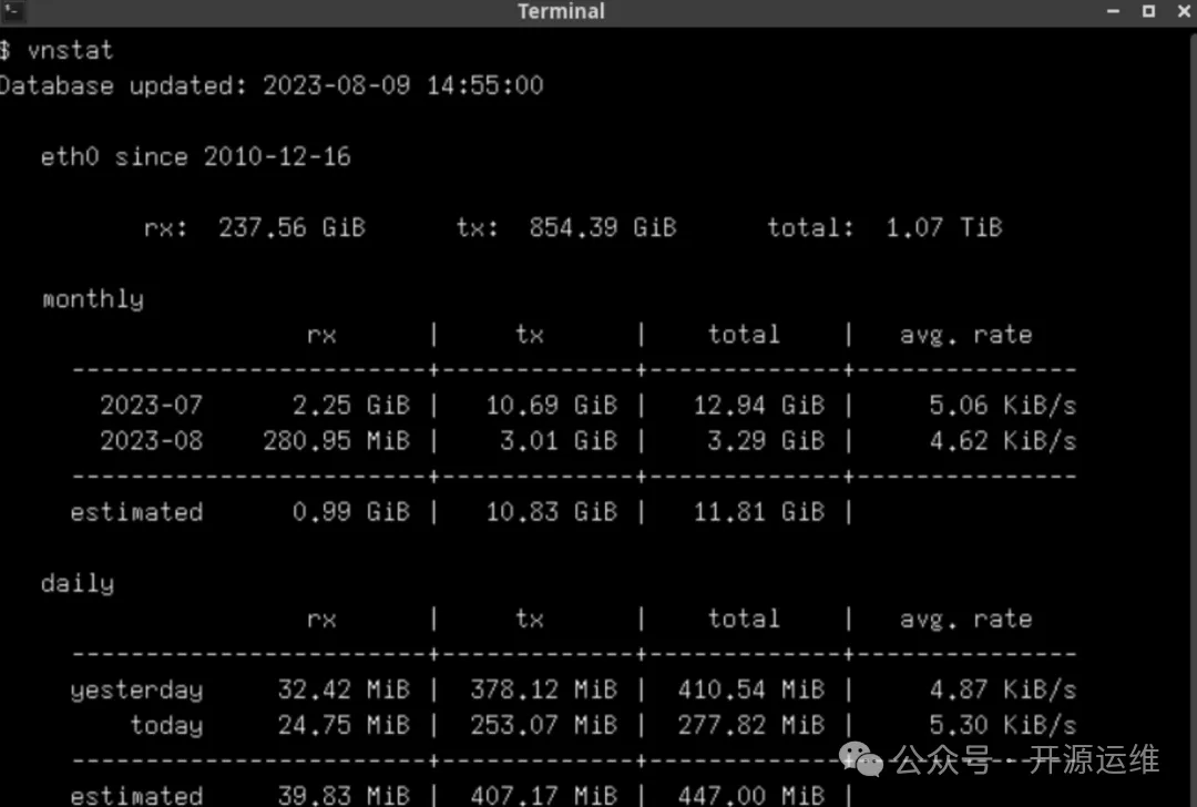 对于服务器运维而言,了解流量随时间的变化趋势至关重要。vnStat 这个轻量级的工具可以安静地在后台记录指定网卡的流量使用情况,并生成日度、月度报告。简单执行 vnstat -d,就能看到当天流量的消耗总量以及峰值出现的时间点。