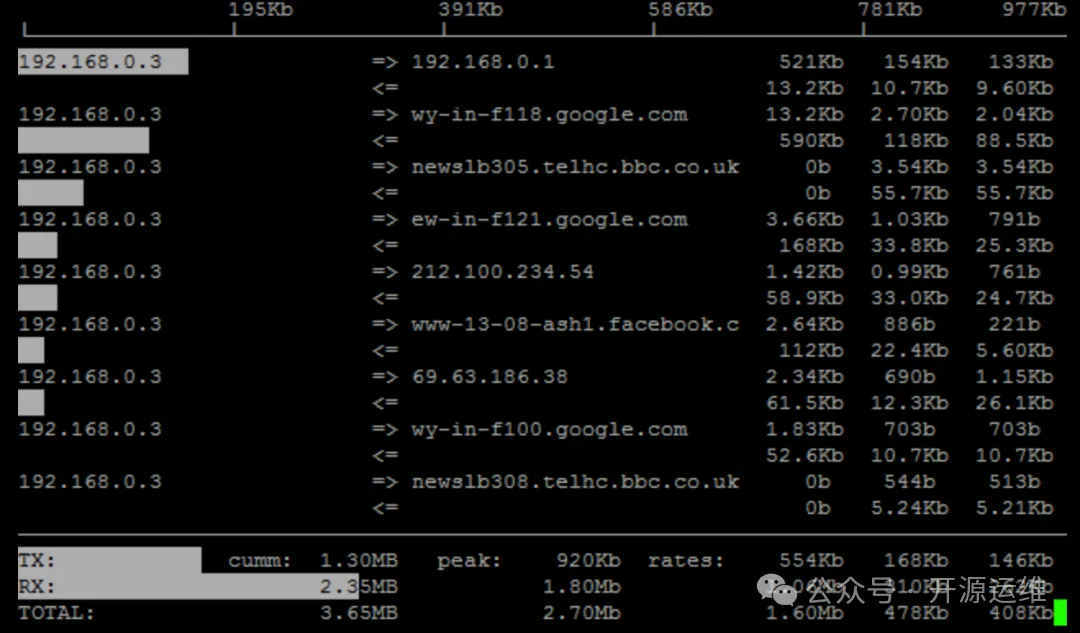 网络突然卡顿,想知道是谁在占用带宽?iftop 或 nload 这类实时流量监控工具就是你的“千里眼”。iftop 会清晰地列出所有当前连接及其流量细节,而 nload 则用动态的柱状图直观展示网卡的进出速度,看着数值跳动,问题源头往往无处遁形。