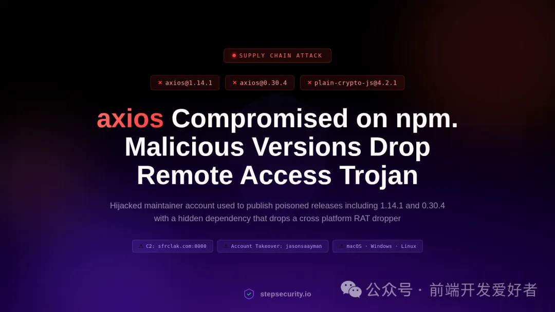 Axios投毒事件:这不是演习,是供应链攻击的“工业级”升级