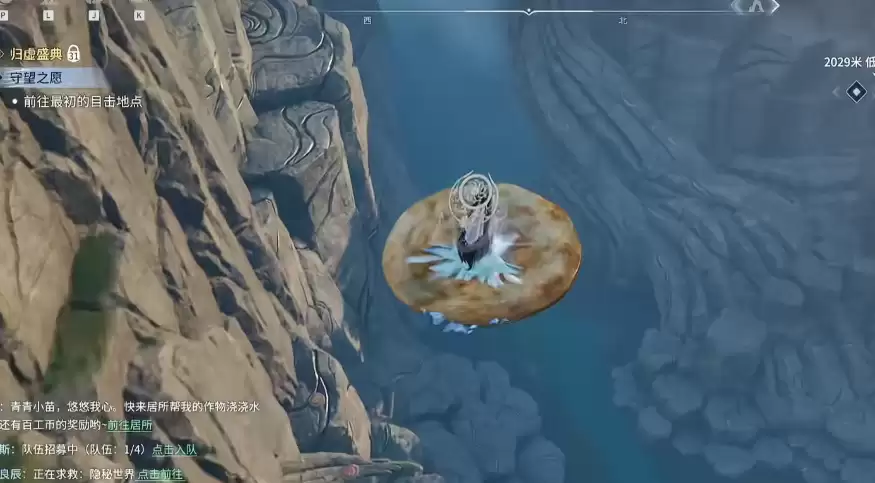 抵达传送点后,直接向前方峡谷跃下。若想加快下落速度,可按下数字键2切换滑板道具,实现快速落地。