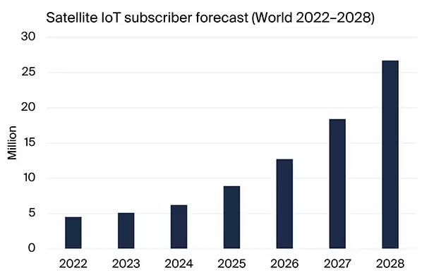 (图1 2024~2028年全球卫星物联网用户增长趋势)