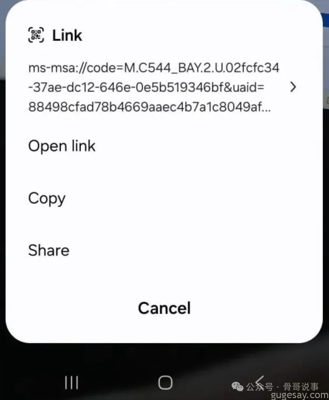 ms-msa://深层链接的二维码。 - 受害者使用手机原生摄像头扫描(这是标准操作流程)。