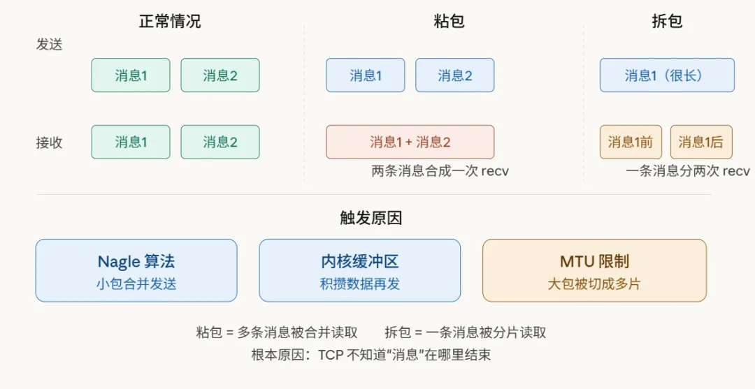 无论是粘包还是拆包,根源都是一个:发送方和接收方处理数据的“节奏”没能对齐。