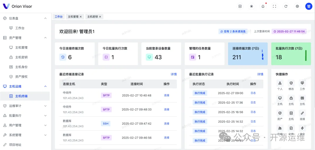 运维工作有多繁琐?面对成百上千的服务器和资产,效率低下几乎是每个团队的痛点。现在,一款名为Orion-visor的现代化工具,正致力于改变这一局面。它集自动化运维与轻量堡垒机于一身,设计初衷就直指效率提升。