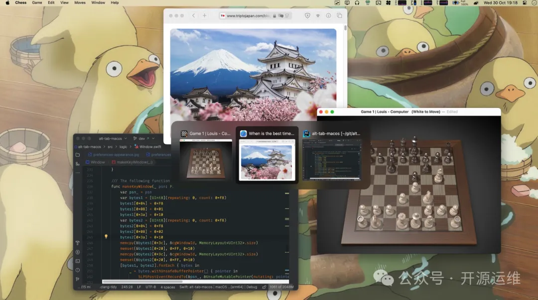 得益于其纯 Swift 开发,这个工具本身非常轻量,在后台运行几乎感觉不到资源占用。更重要的是,窗口预览的渲染和切换动画都极其流畅,绝不会因为卡顿而打断你行云流水般的工作节奏。